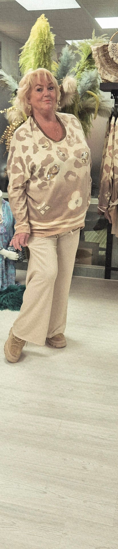 Prachtig broek met opdruk ,elastiek in de taille, 2 Steekzakken