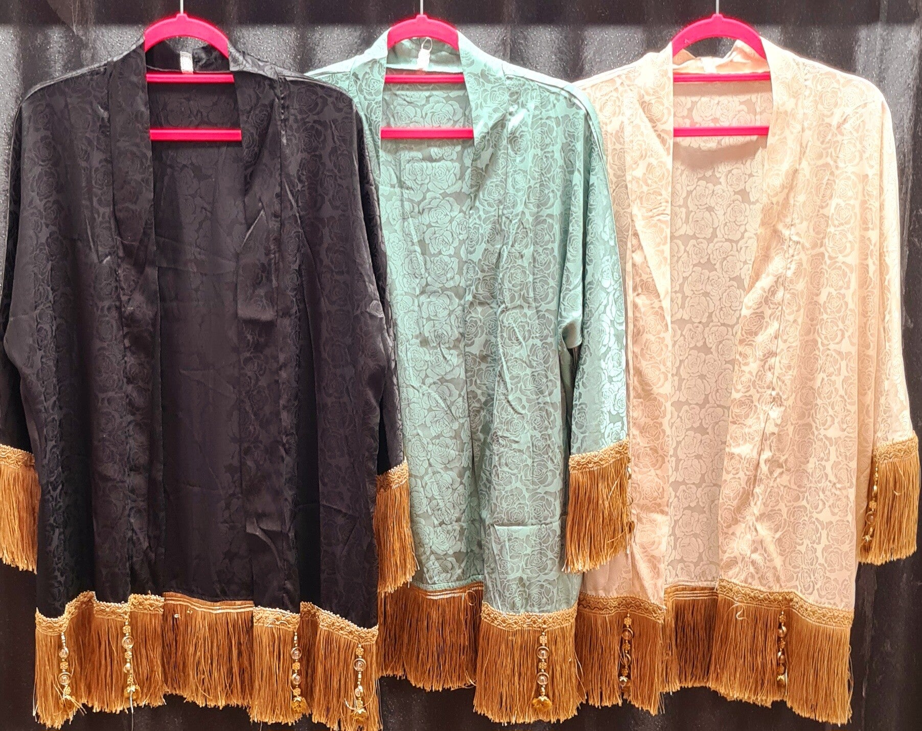 Prachtig silky jasje/vestje Afgezet met goud franje