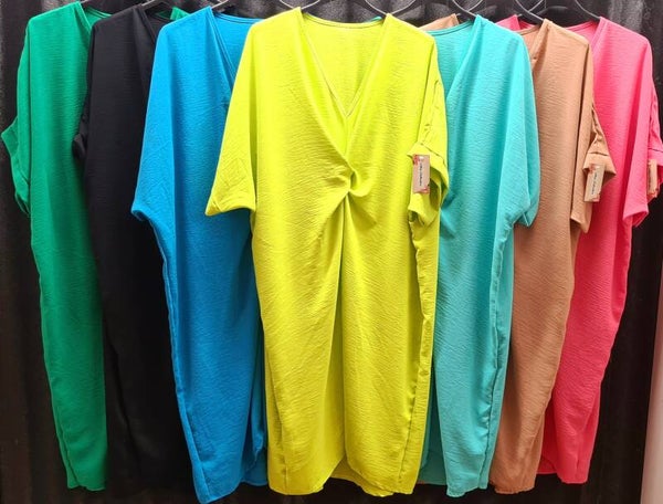 Weer de fantastische knoop jurk op voorraad, heerlijke stretch stof