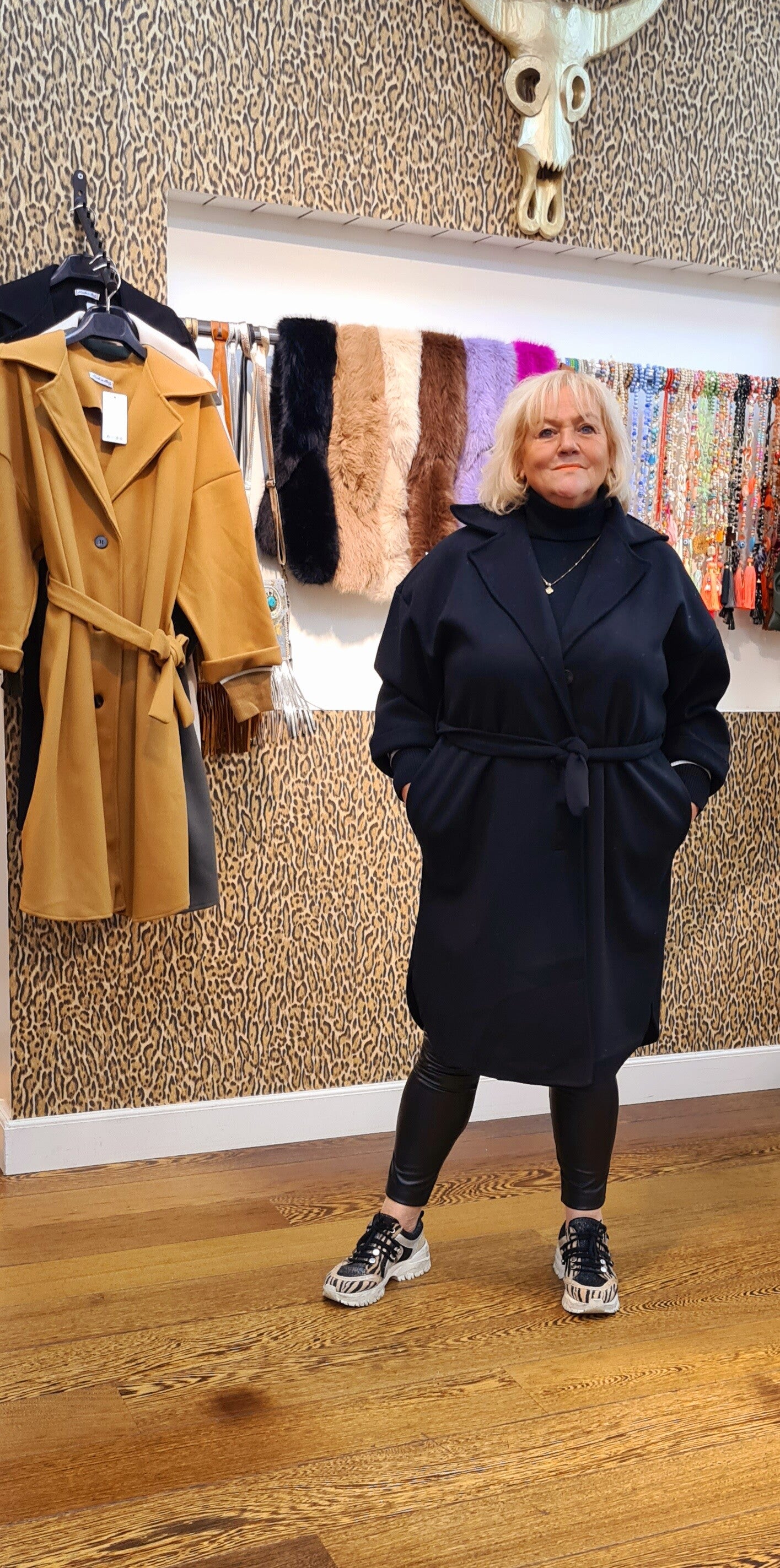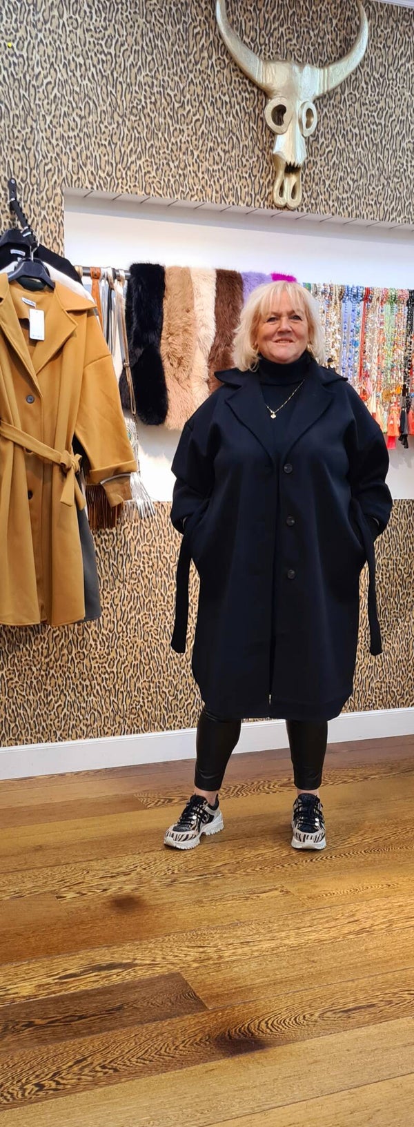 Prachtige jas van een soort vilt zit heerlijk comfi en staat ook nog eens apart met die tekst achter op de rug