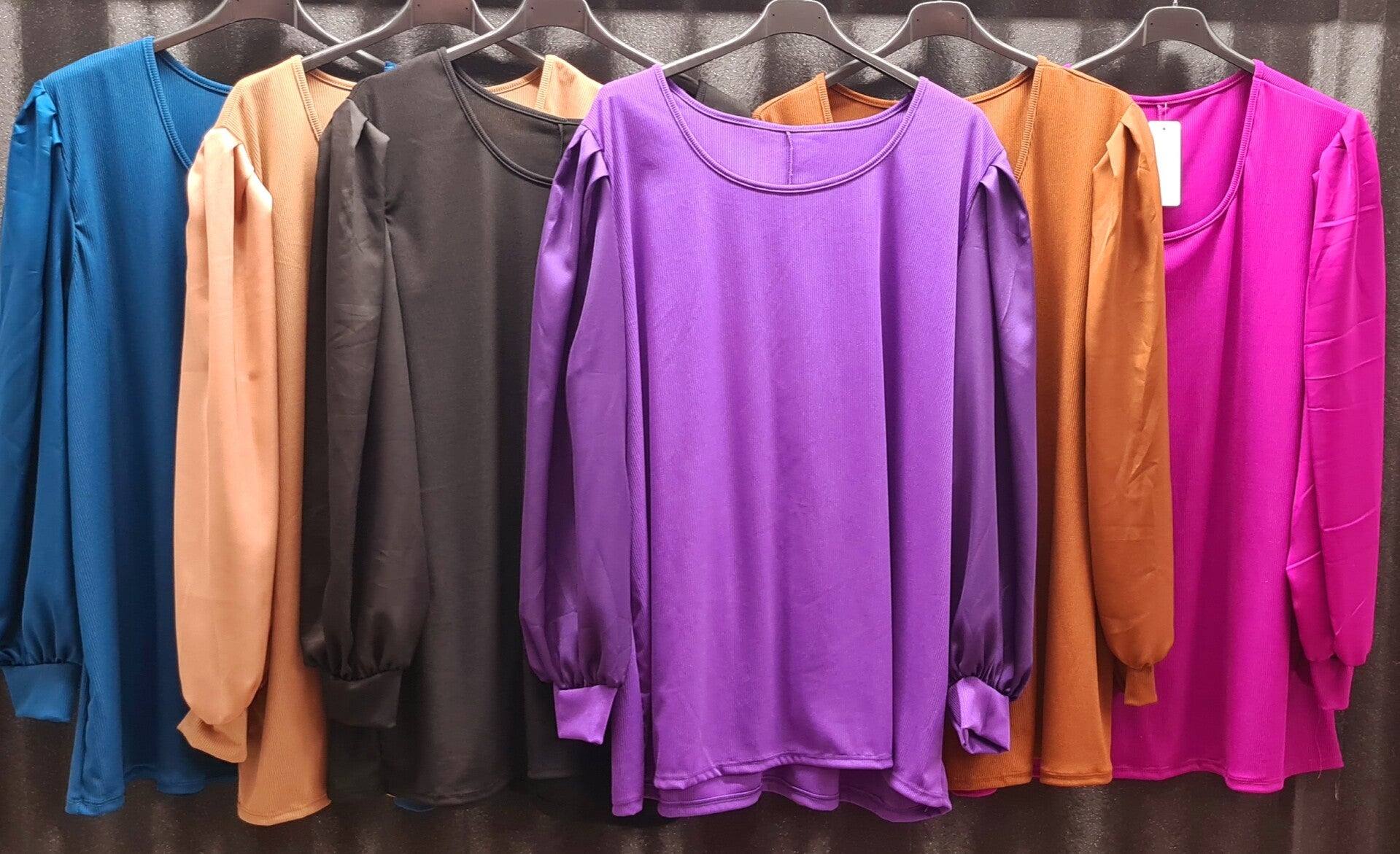 Prachtig A lijn shirt van lichte stof met satijn pofmouw