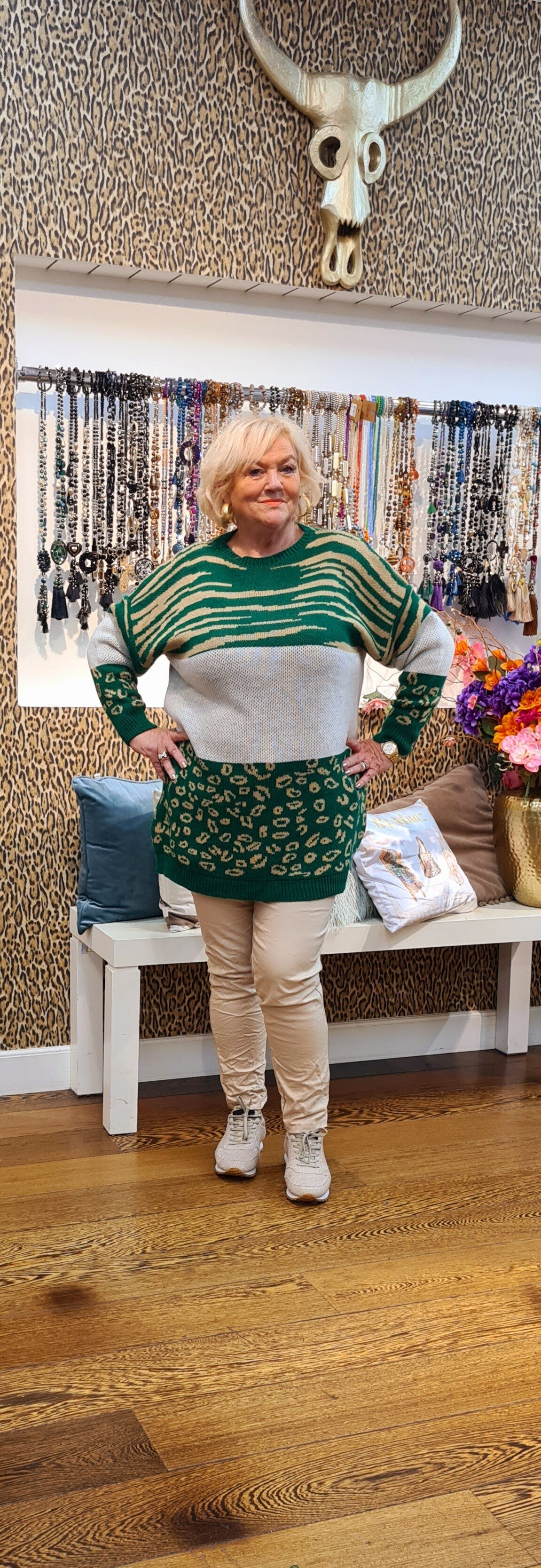 Heerlijke trui , leuke print lekker comfi