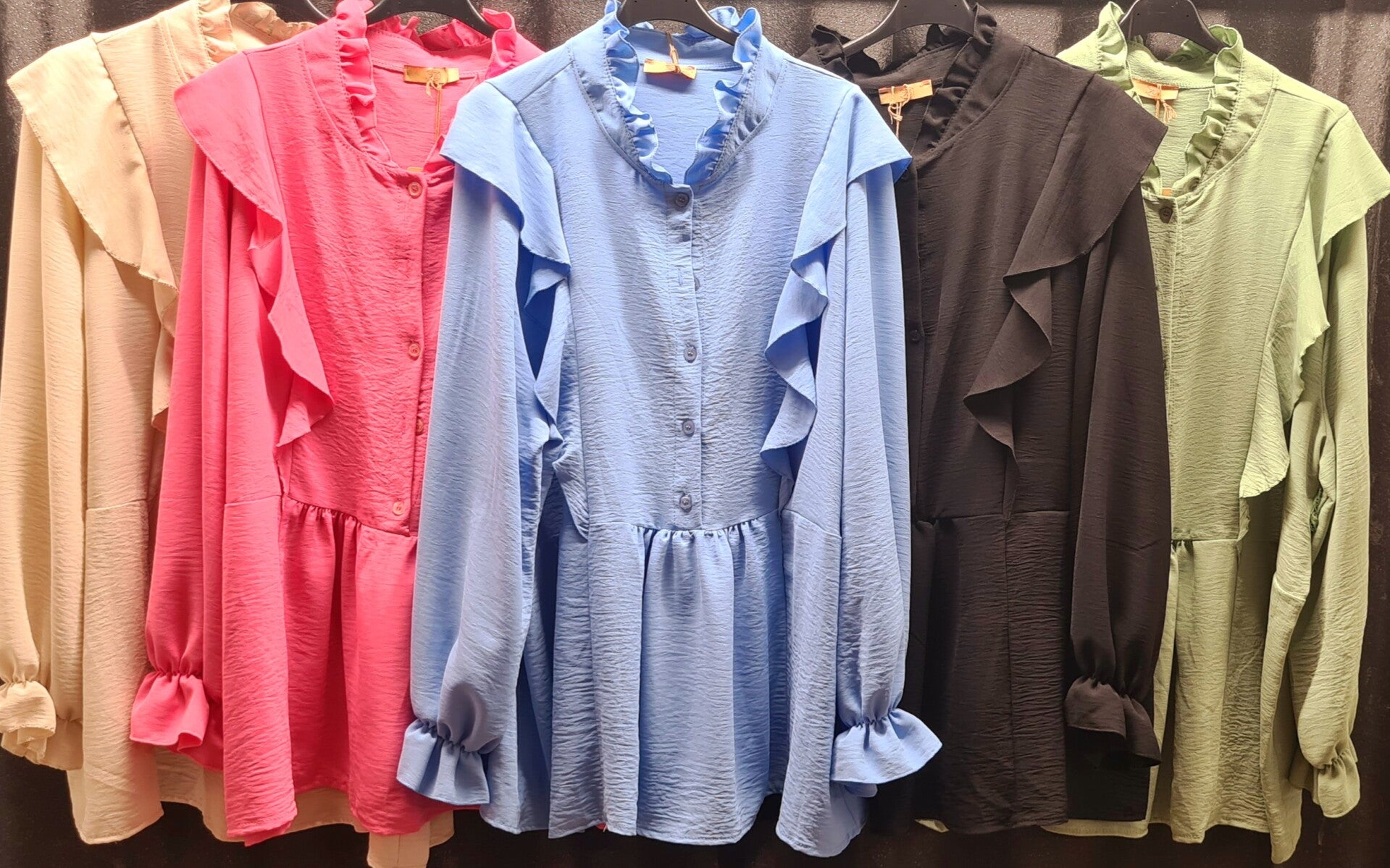 Leuke aparte blouse met roesel en een soort van pasje erin