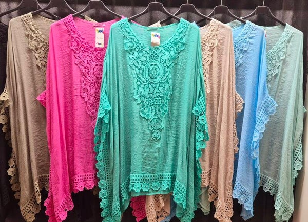 Heerlijke viscose kaftan afgezet met prachtig band kant bloemen
