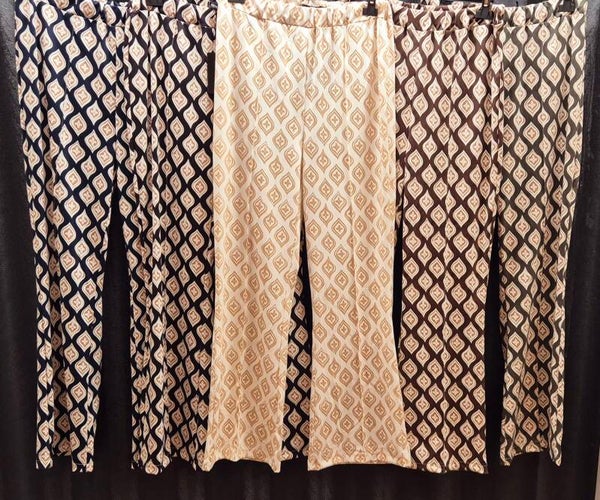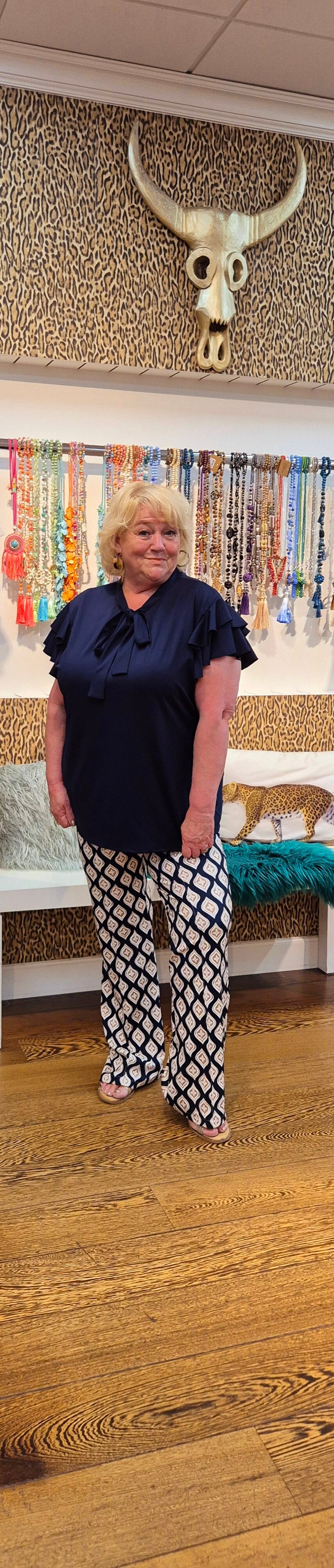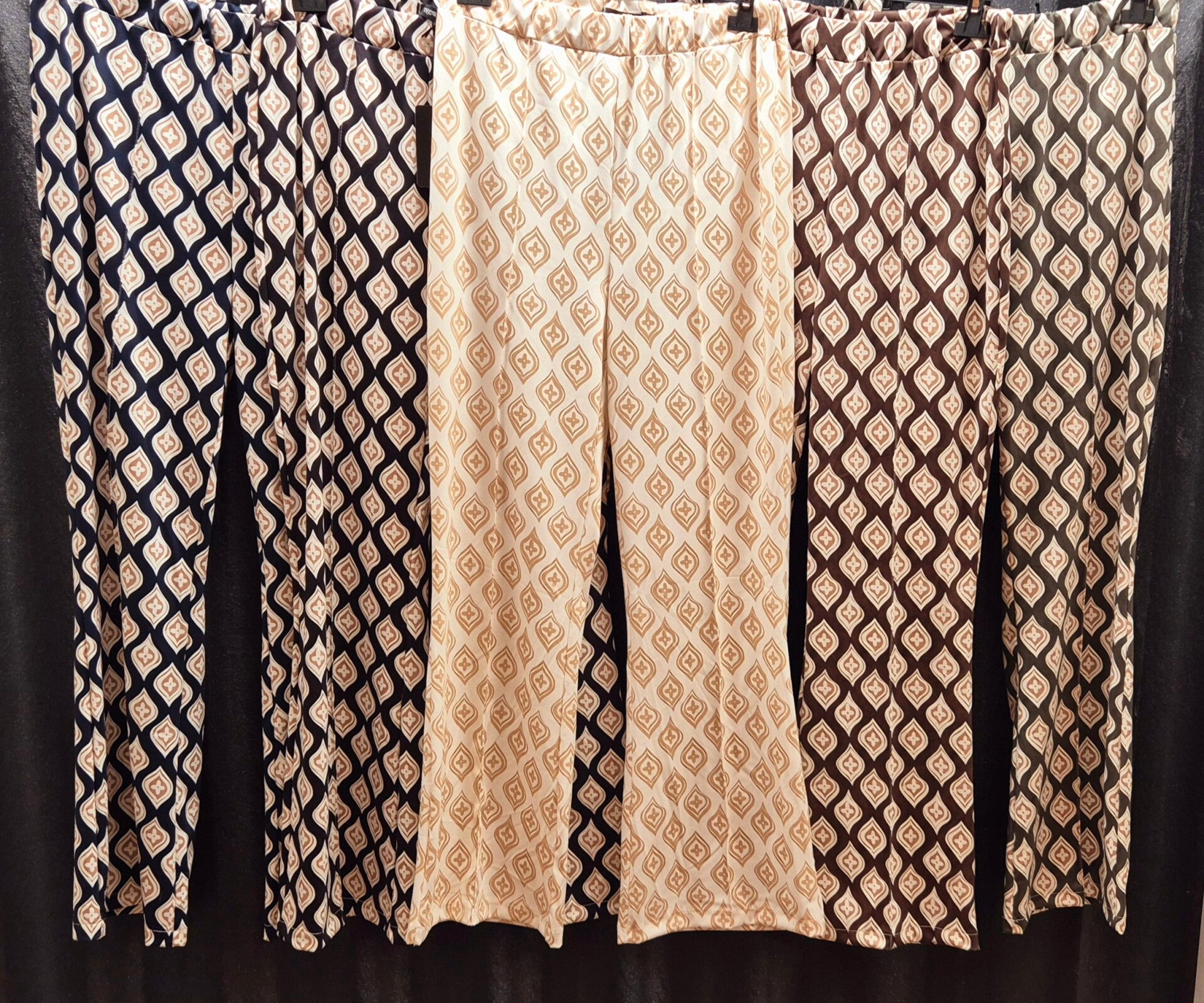 Schitterende kwaliteit travel broek met flair pijp en elastiek in de taille