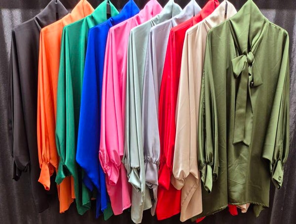 Prachtige oversized silky blouse met strik of je laat het los hangen