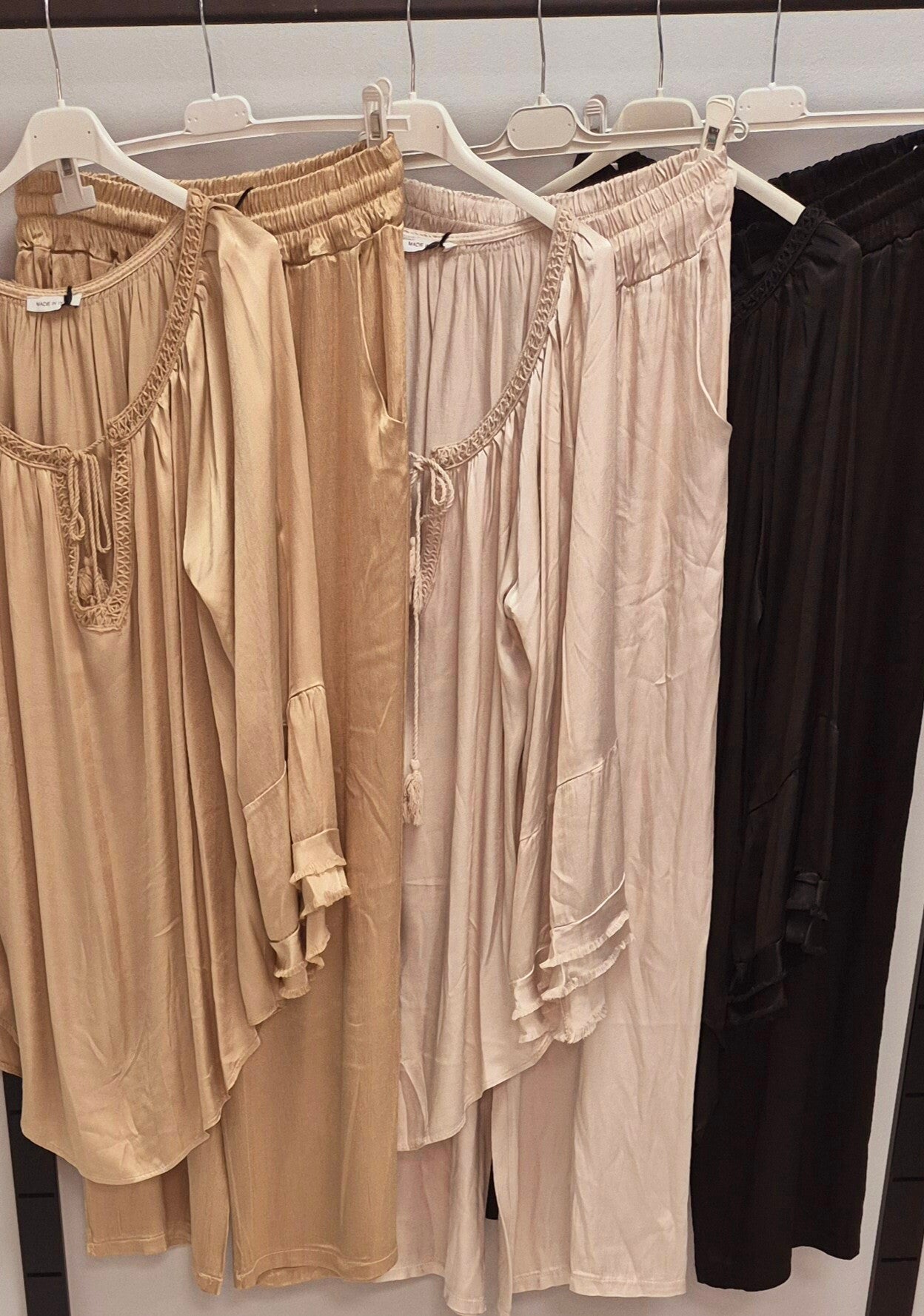 Prachtige silky stretch broek met elastiek in de taille en steekzakken