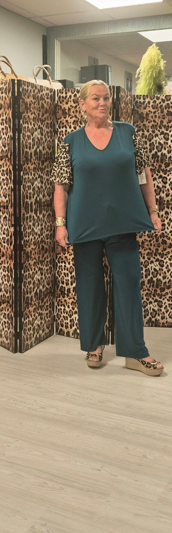 Leuke apart shirt met panter mouwen in supermooie najaars kleuren