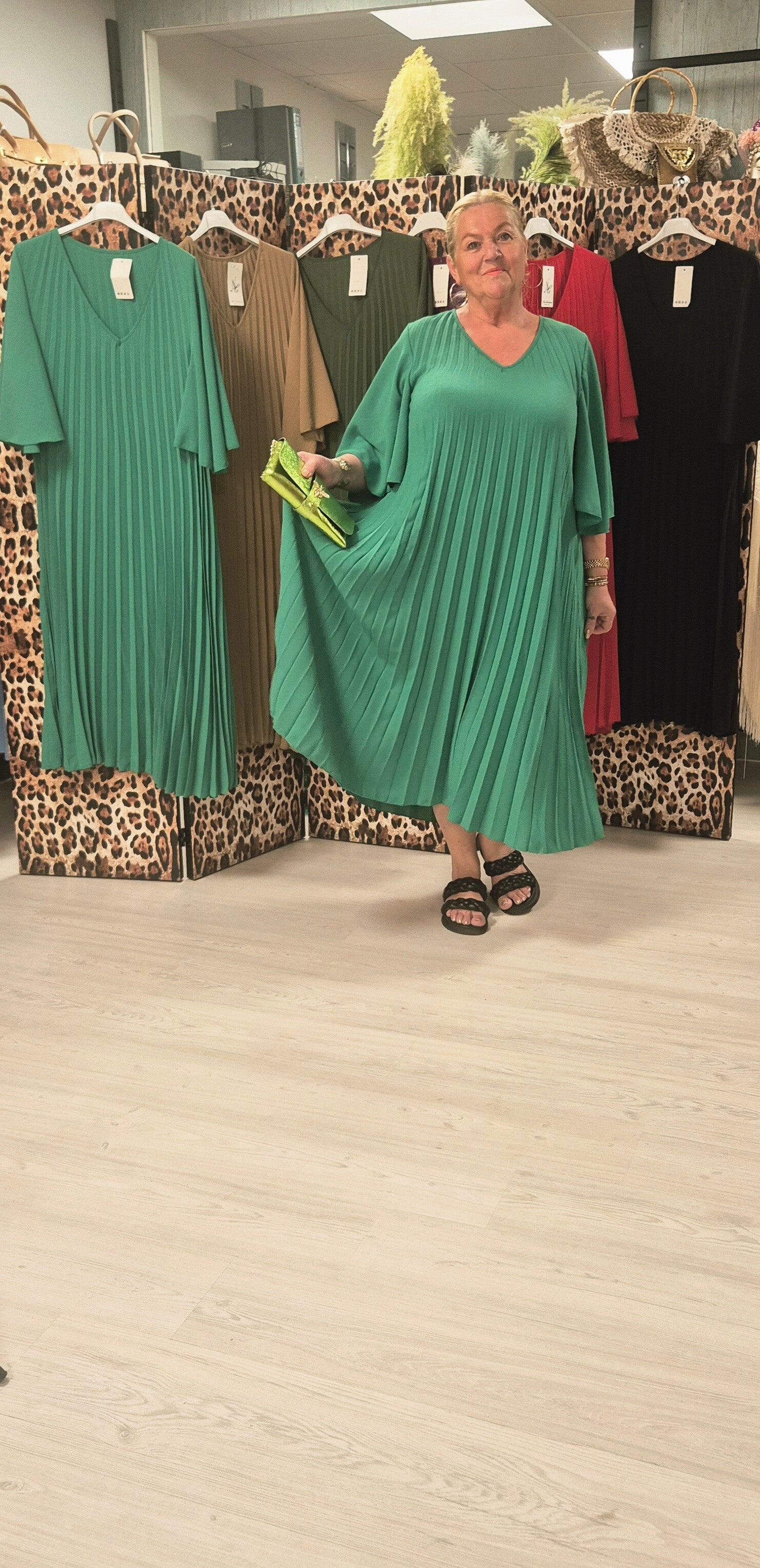 Prachtige plisse jurk, vlinder mouw, past een flinke armen in