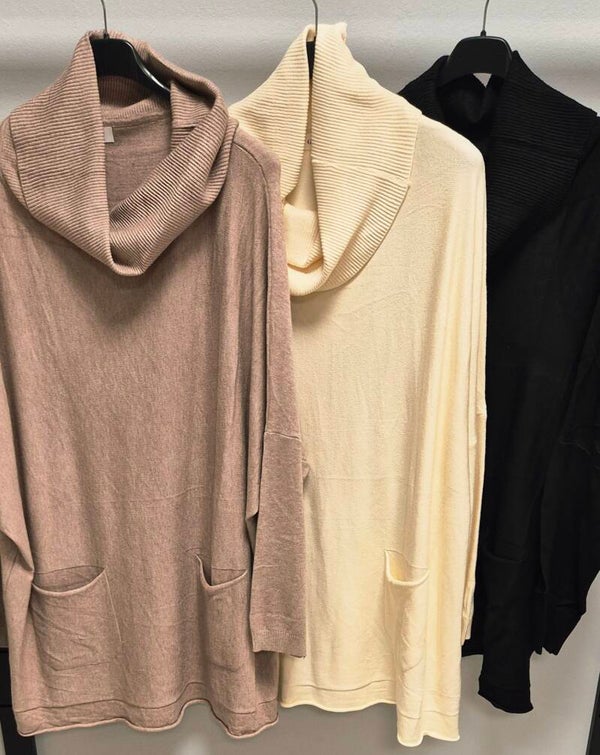 Heerlijke coltrui, met hangende coltrui, 2 zakjes ,een heerlijk dun breisel