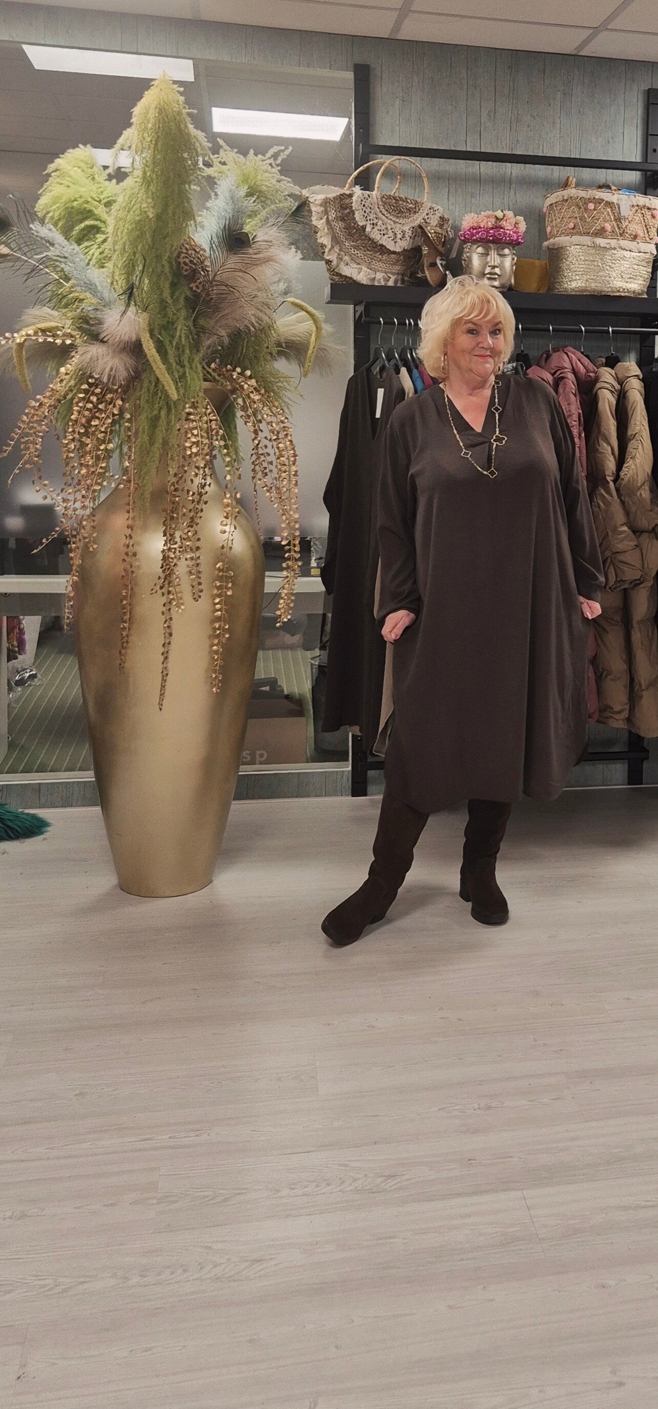 Heerlijke jurk met lange. Mouw en plooitje wat het buikje verdoezeld