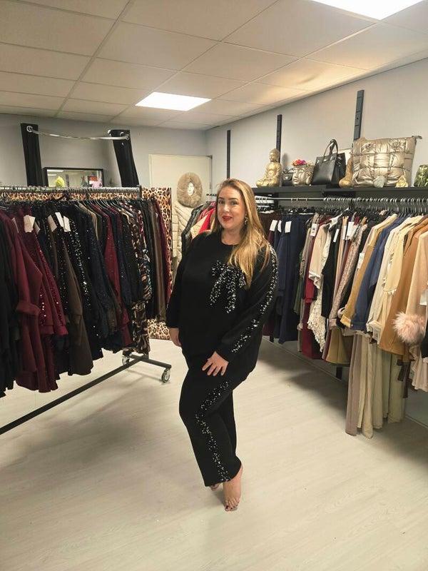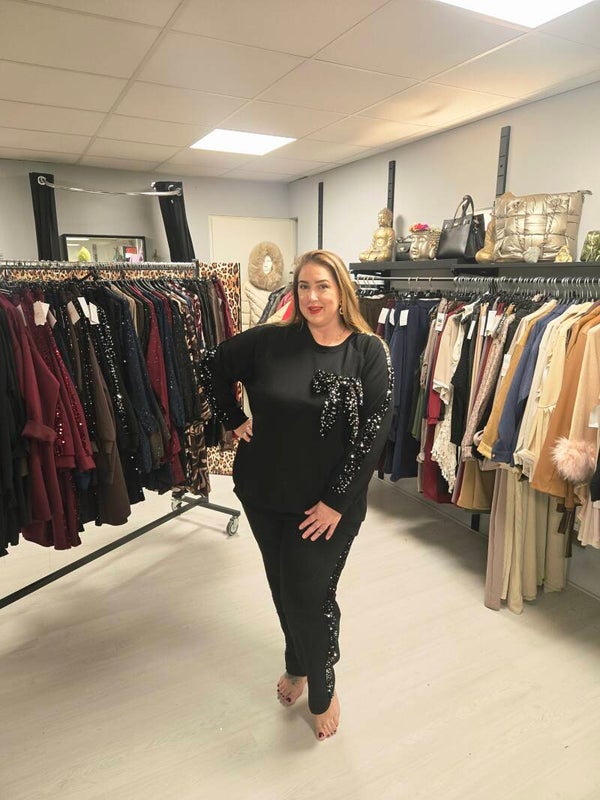 ZWART IS MET ZWARTE GLITTER EN ZWART/ZILVER IS EEN ZWART PAK MET ZWARTE GLITTER