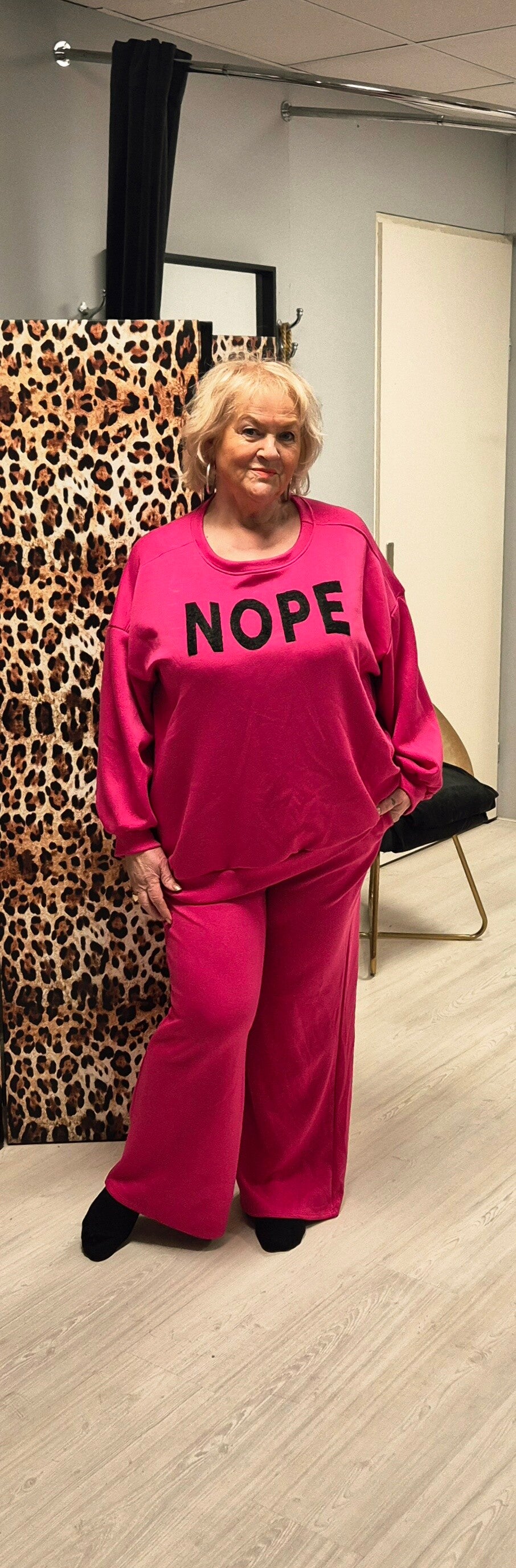 Heerlijk huispak van een supermooie stof , superzacht broek met zakken, altijd fijn, en een heerlijke sweater