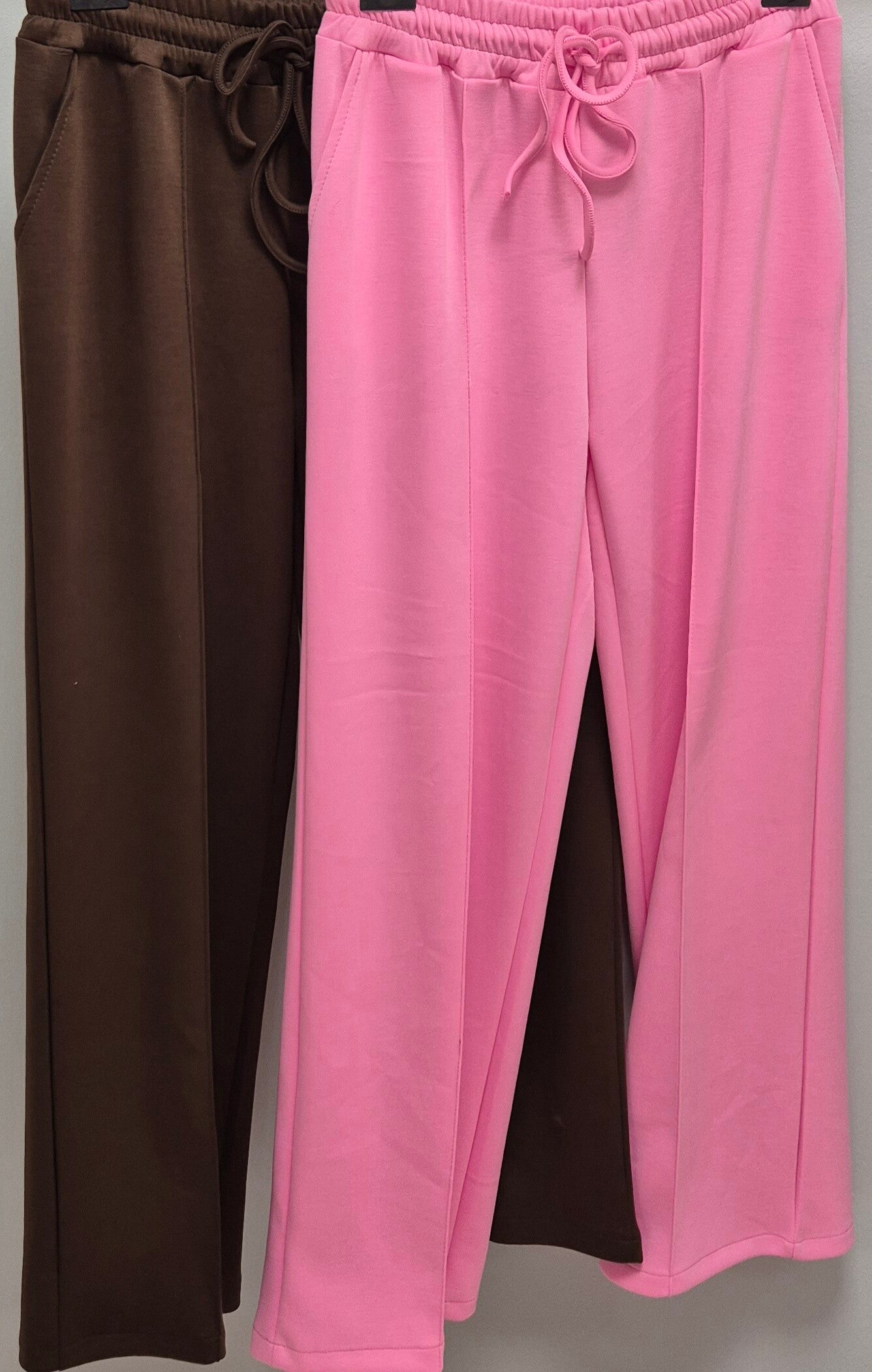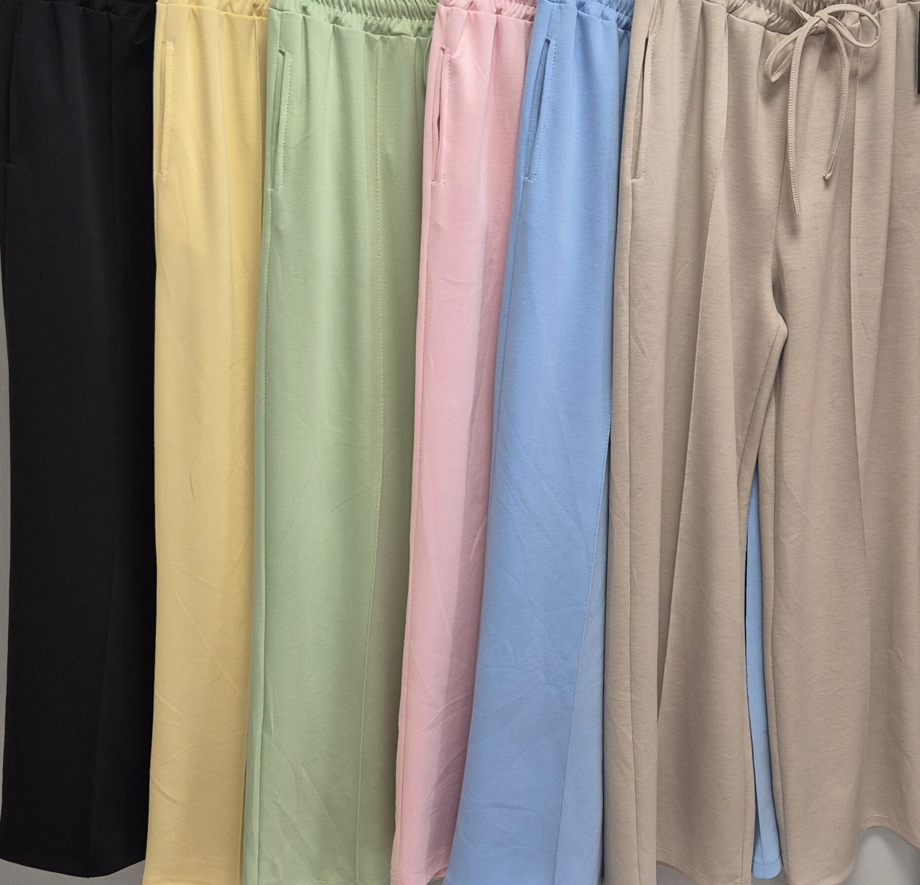Prachtige wijdde pijp broek met elastiek in de taille en steekzakken
