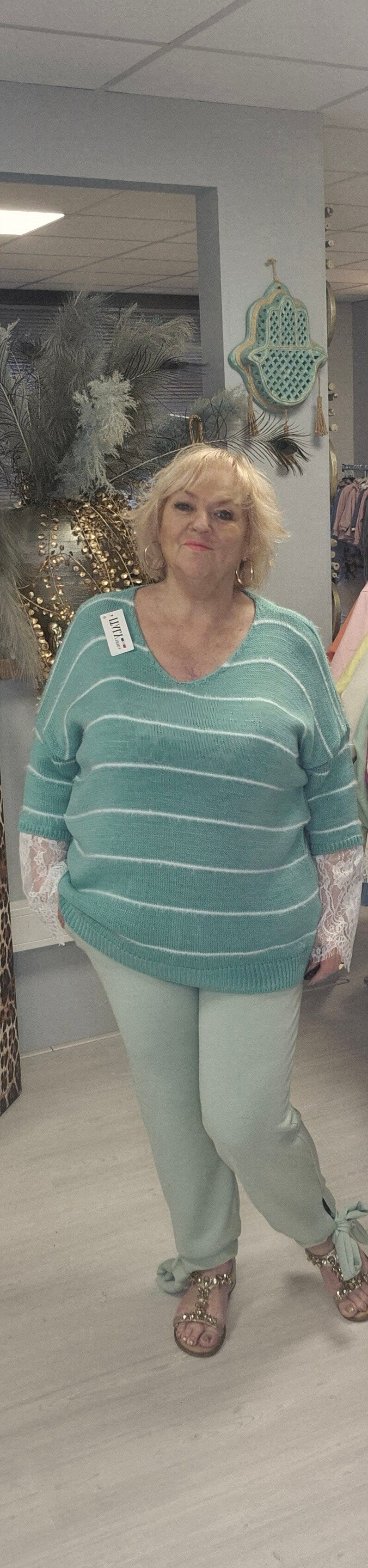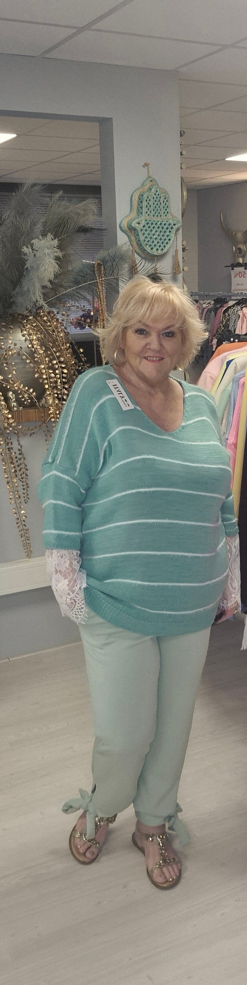 Leuke aparte broek met aan de onderkant een strik , hoe apart