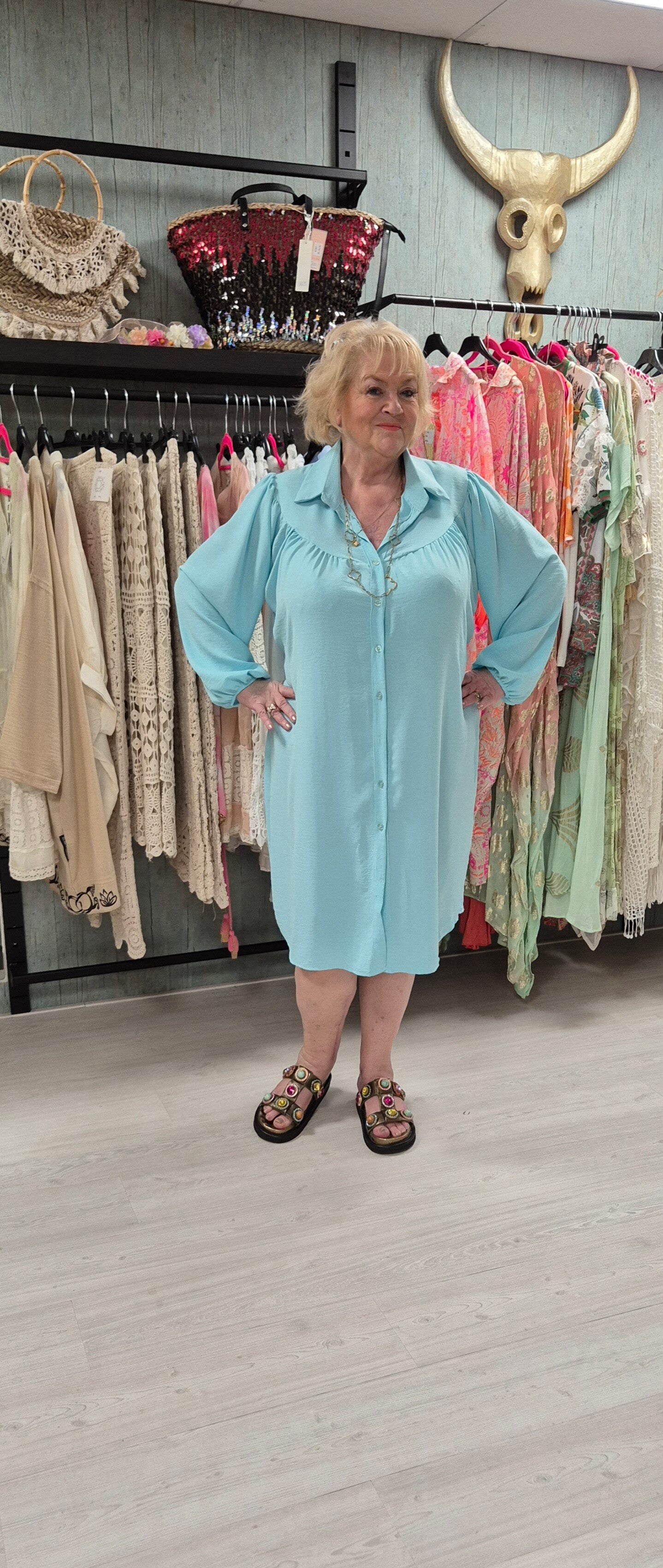 Prachtige A lijn lange blouse eventueel ook als jurkje te dragen of open als kimono
