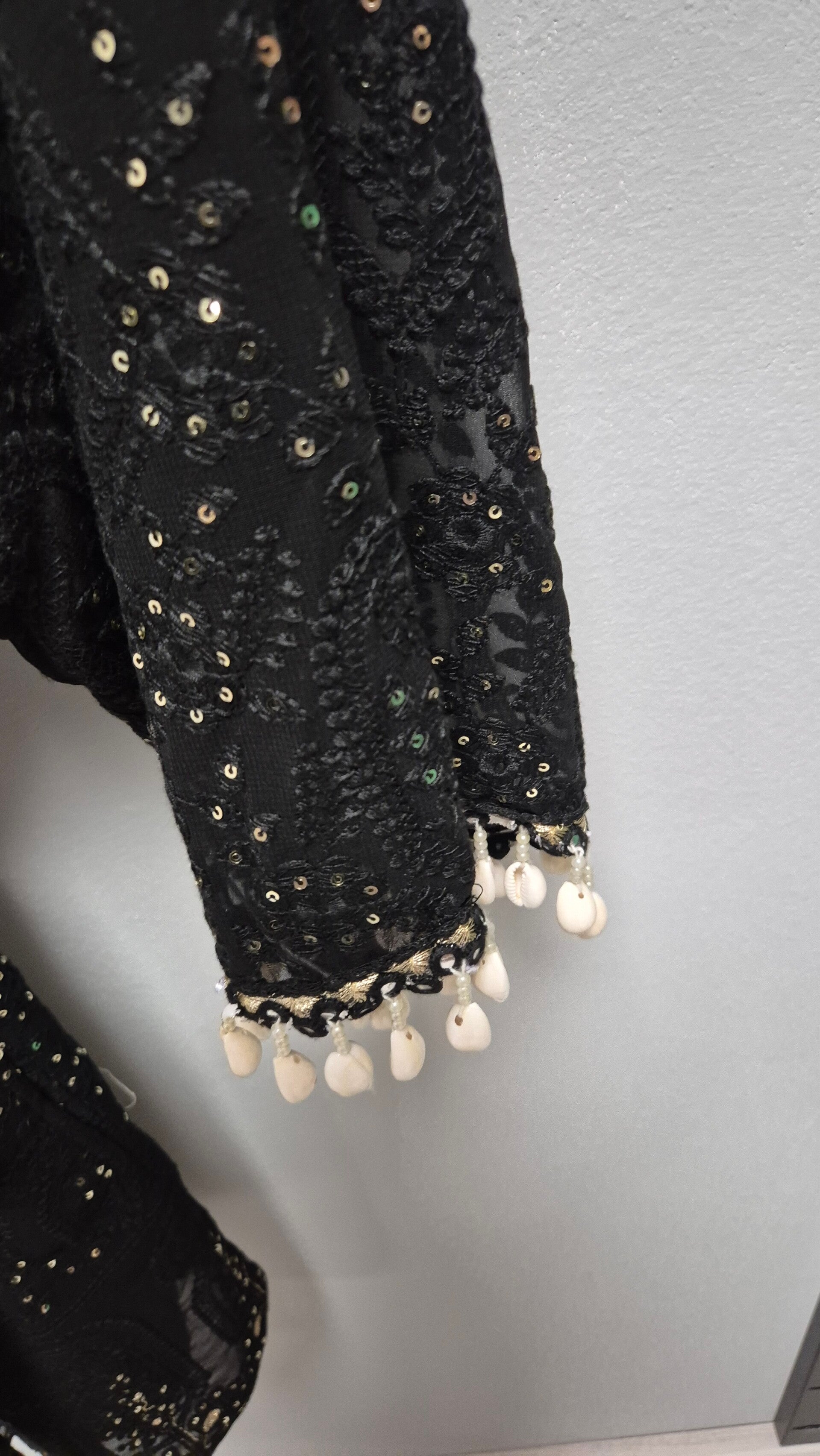 Prachtige kanten kimono jasje met e hte schelpjes,s aan de mouw
