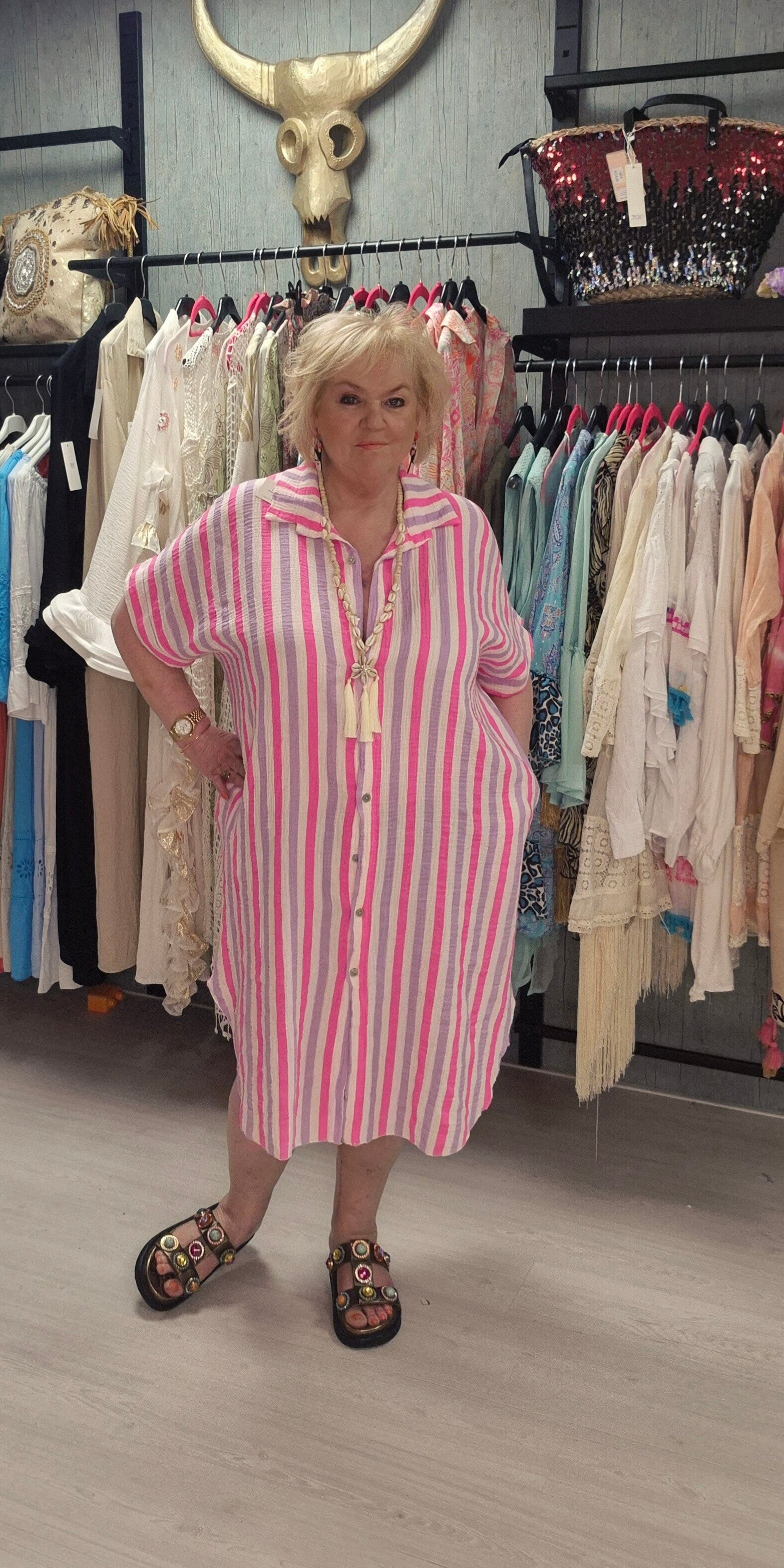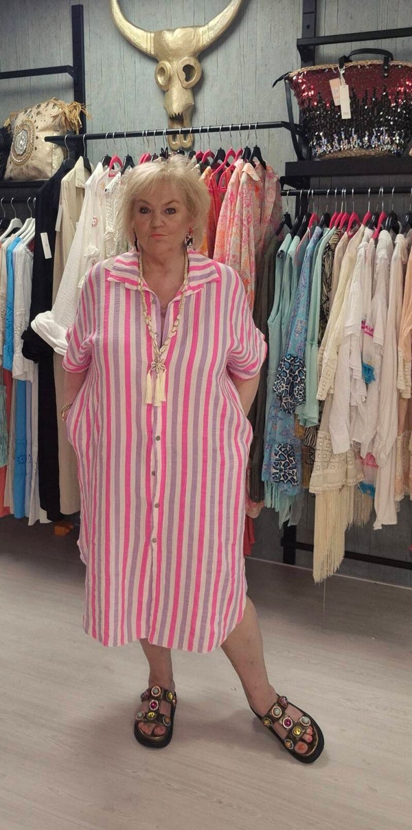 Heerlijke katoenen doorknoop jurk ook als kimono te dragen met zakken