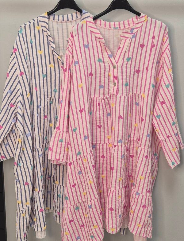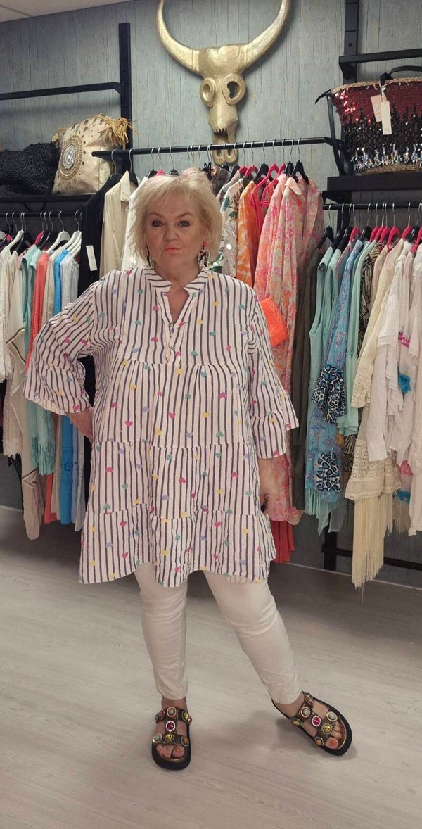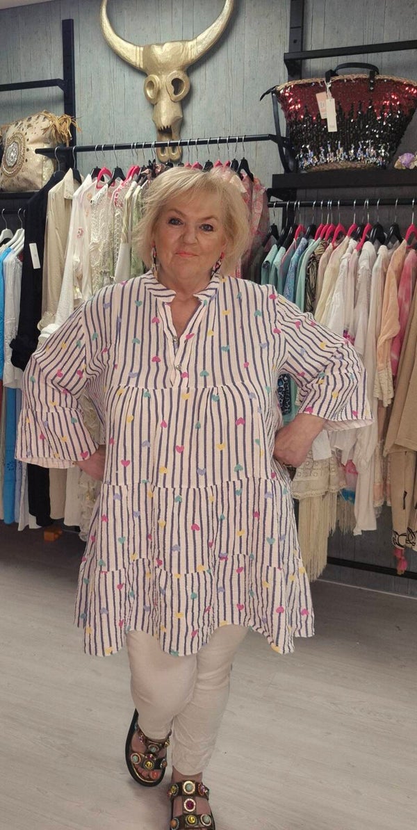 Heerlijke katoenen A lijn tuniek met hartjes en streepje s