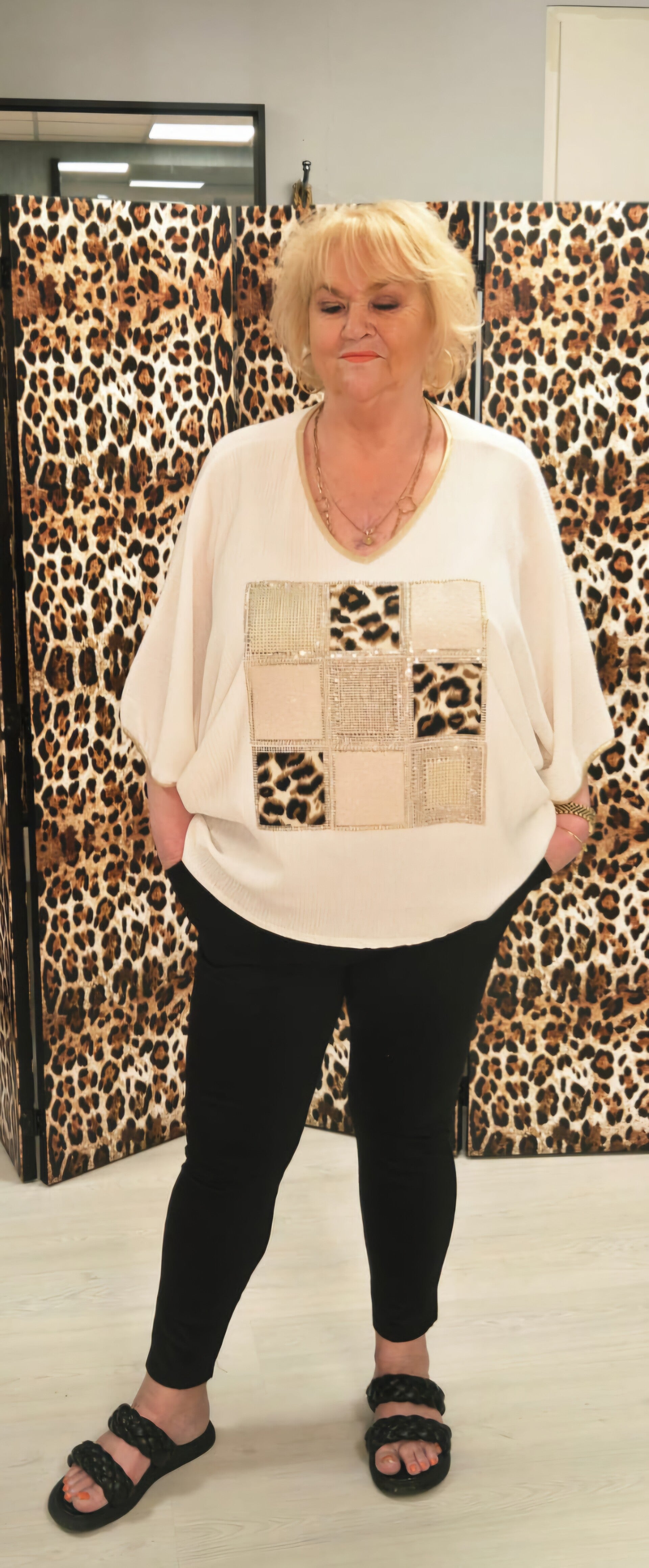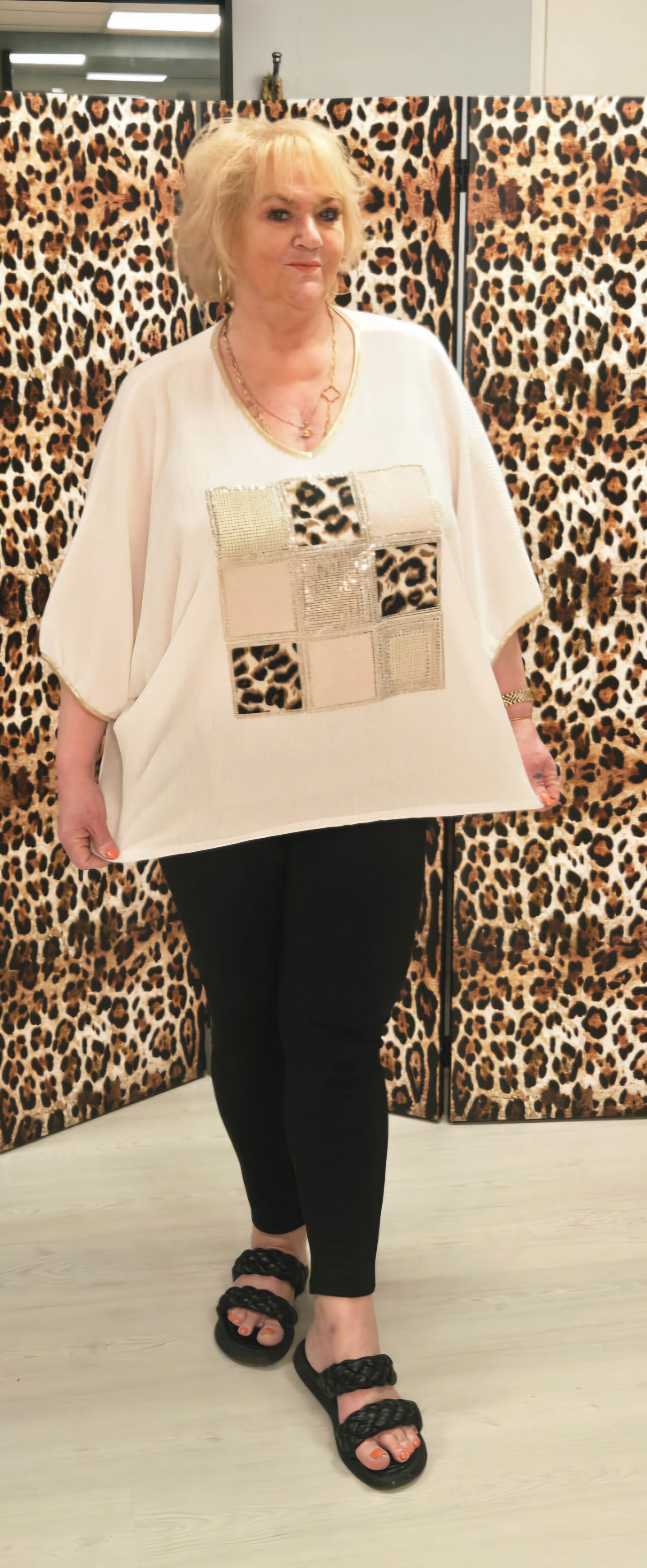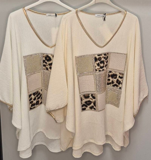 Prachtige groot shirt met nog mooiere applicatie met diamantjes