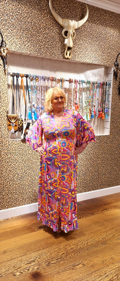 Hier onze fantastische maxi jurk van een luxe travel stof